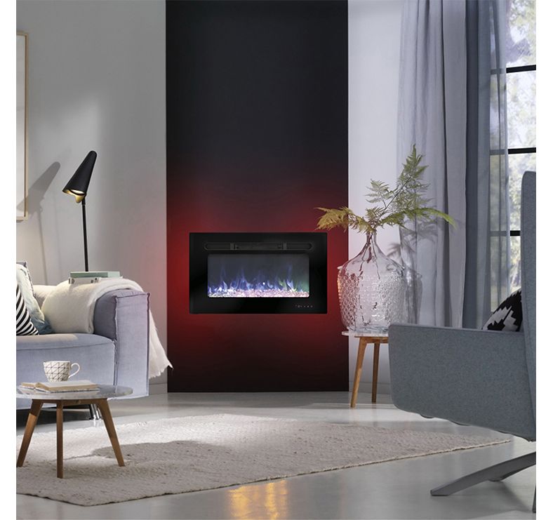 В очаге предусмотрены функции визуального эффекта горящего огня, который создается с помощью проекционной LED-технологии, имитация языков пламени доступна в 7 вариантах ветов. Есть функция регулировки яркости и скорости пламени. Так же есть звуковой эффект. Очаг может работать как в режиме обогрева, так и в декоративном режиме без обогрева. В режиме обогрева в очаге предусмотрена поградусная регулировка обогрева от 0,75 до 1,5 Вт, поэтому в холодные дни данный электрокамин можно использовать как дополнительный источник тепла.