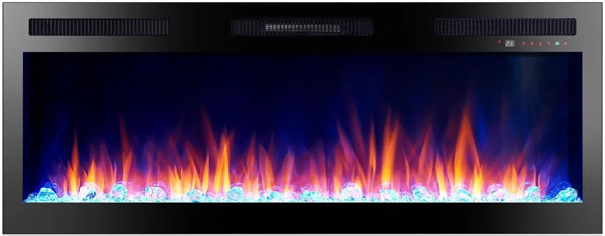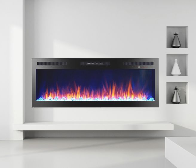 В линейном очаге Emerald 50 визуальный эффект горящего огня создается с помощью проекционной LED-технологии. Муляж в очаге - сверкающие кристаллы. В очаге присутствует информационный дисплей (дисплей отображения настроек). Предусмотрены функции регулировки яркости и скорости пламени, звуковой эффект горения пламени и потрескивания дров, независимый декоративный режим, защита от перегрева, таймер отключения, термостат. В данном линейном очаге Emerald 50 используется высококачественное закаленное стекло.