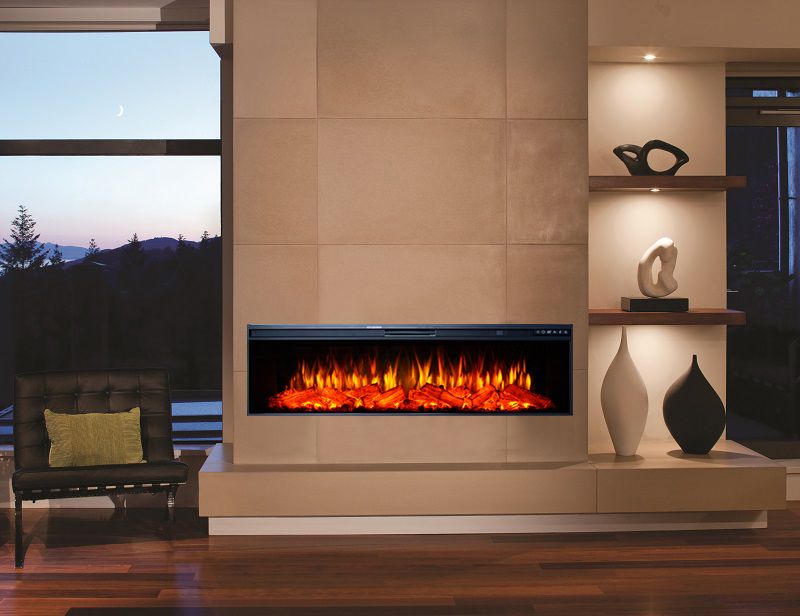 Линейный электроочаг FreeSpace 60 LED FX QZ – это современный широкоформатный электрический очаг. Муляж дров, выполненный по слепку настоящих дров, расположен за прямым стеклом. Его размер составляет 425х1455х210 мм, а встраиваемые размеры: 415х1435х190 мм. Он может устанавливаться как отдельно без каминного портала, также встраиваться в нишу или каминный портал.