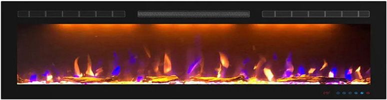 Работа очага возможна как в декоративном режиме без обогрева, так и в режиме обогрева. Кварцевый обогреватель с функцией «климат-контроль» спрятан в верхней части очага, обеспечивает обогрев в холодную погоду, а что самое главное – не сжигает кислород в помещении. Работает автономно от эффекта пламени, поэтому камин можно использовать в течение всего года. Чувствительный термостат поддерживает комфортную температуру воздуха с высокой точностью. Управлять работой линейного электроочага FreeSpace 75 LED FX QZ можно с помощью пульта ДУ или кнопок, расположенных на фронтальной панели очага.