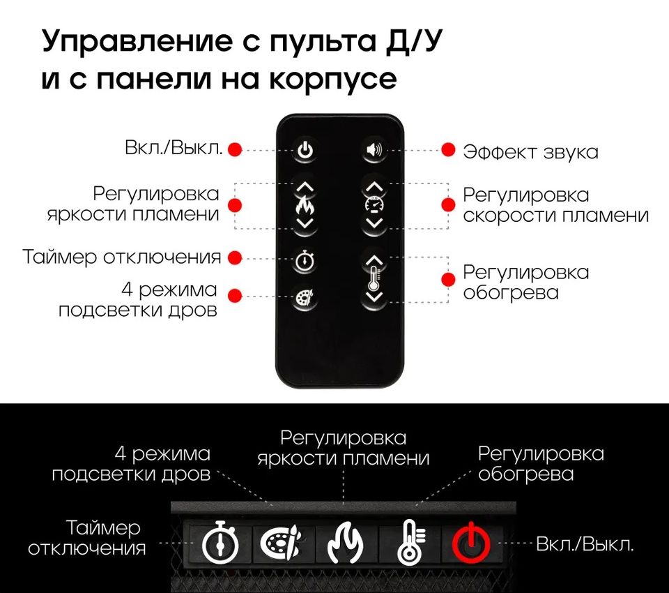 - 5 вариантов цвета подсветки дров