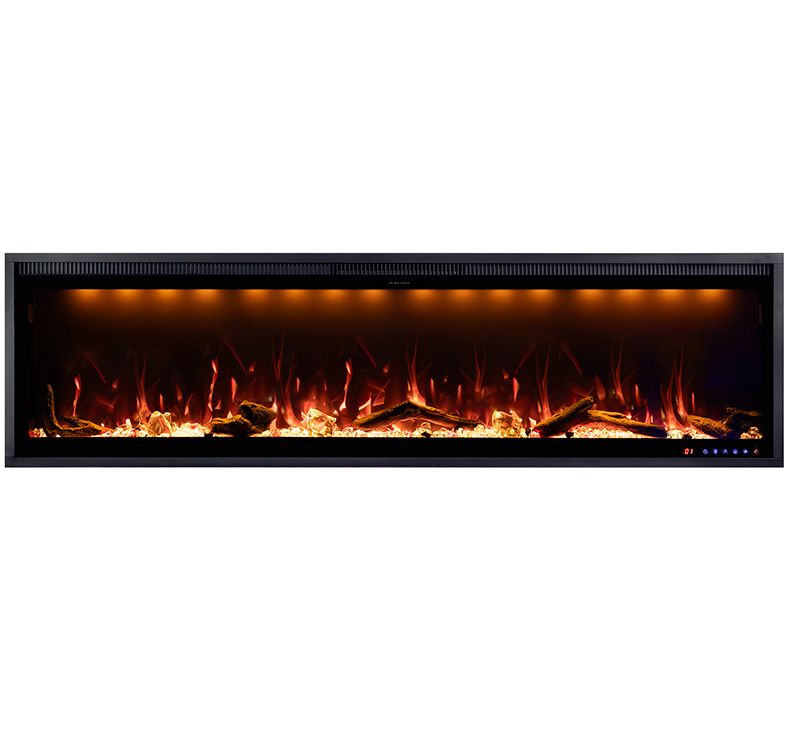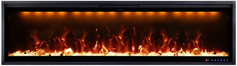 Декоративный элемент линейного очага Mercury 60 LED RF исполнен в виде муляжа прогоревших дров, с прорисовкой натуральной текстуры, и 3-х видов кристаллов различного размера и цвета (прозрачные, черные и оранжевые). Все элементы идеально подобраны по типу и расположению и создают полное впечатление реалистичности пламени, которое играет различными завораживающими отблесками на импровизированном топливе. Линейный электроочаг Mercury имеет независимый декоративный режим (без обогрева), защиту от перегрева, таймер отключения, который можно выставить в диапазоне от 1 до 9 часов.