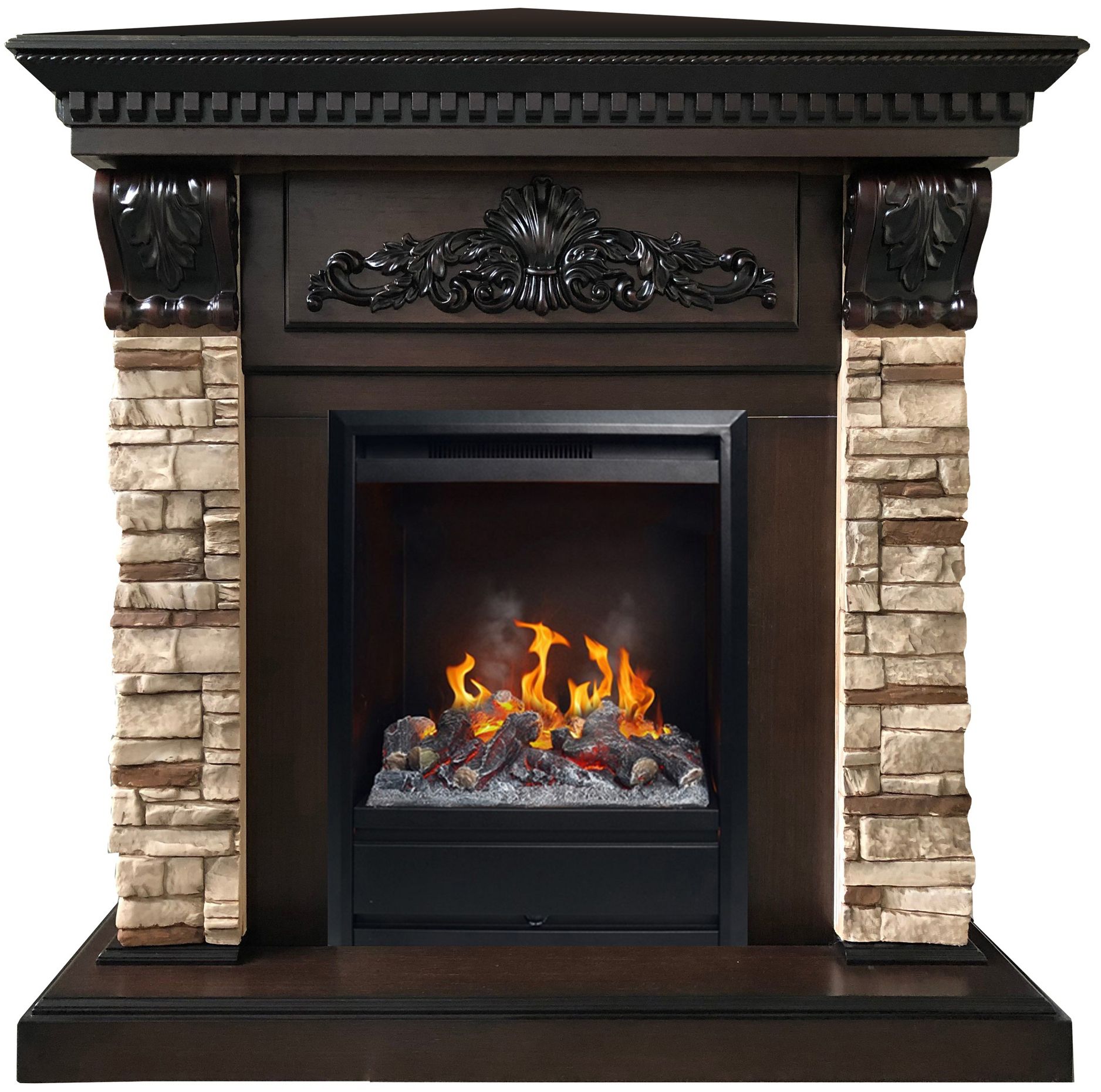 Укомплектован электроочагом 3D Olympic с технологией имитации пламени 3D, который имеет на 100% достоверный и реалистичный яркий эффект пламени. Настраиваемая высота пламени. В декоративном режиме электрический очаг потребляет всего 150 Вт в час. В дополнение к декоративному режиму имеется возможность работы в режиме обогрева мощностью 750 Вт или 1500 Вт, поэтому в холодные дни электрокамин можно использовать как дополнительный источник тепла. Предусмотрена функция защиты от перегрева. Электроочаг 3D Olympic управляется дистанционно с пульта. Также управление продублировано на панели очага. Электрический камин обеспечивает дополнительное увлажнение воздуха!