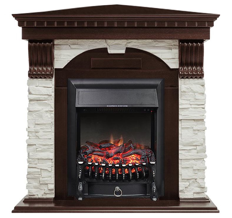 Портал укомплектован классическим электроочагом Fobos RC. В очаге визуальный эффект горящего огня создается с помощью проекционной LED-технологии. Присутствует звуковой эффект горения пламени и потрескивания дров. Очаг может работать как в режиме обогрева, так и в декоративном режиме без обогрева. В режиме обогрева в очаге предусмотрено 2 уровня регулировки обогрева, возможно переключение мощности обогрева 750-1500 Вт, поэтому в холодные дни данный электрокамин можно использовать как дополнительный источник тепла. Предусмотрена функция защиты от перегрева. Комплектуется пультом дистанционного управления.