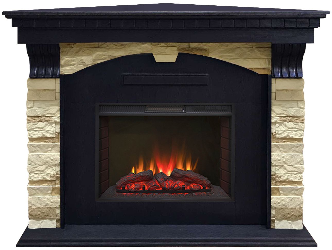 Портал укомплектован широким электроочагом Sparta 25.5 LED с великолепным разноцветным пламенем (3 цвета пламени), пламя в очаге смотрится выразительно и эффектно, а муляж дров и кирпичная кладка создают полное сходство с натуральным очагом. Эффект пламени притягивает к себе внимание с первых секунд. В очаге реализован один из самых совершенных способов визуализации пламени 2D на сегодняшний день. Визуальный эффект горящего огня создается с помощью проекционной LED-технологии.