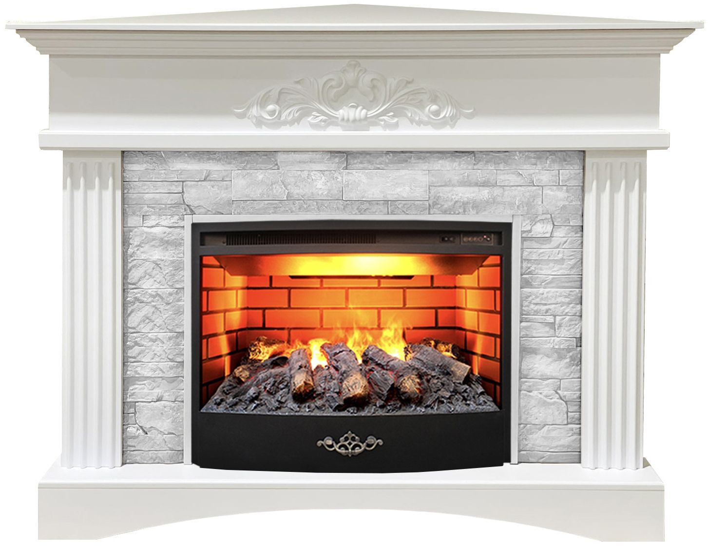 В комплекте используется сверхширокий электрический очаг 3D FireStar 25.5 - это 3D электроочаг с эффектом пламени 3D нового поколения. Максимально достоверный и реалистичный эффект пламени - это современное и изящное решение для тех кто предпочитает "живое" пламя в сочетании с безопасностью. Звуковой эффект потрескивания дров и эффект мерцания углей погрузят в атмосферу вечерних посиделок у костра, а пульт ДУ поможет установить необходимые параметры не вставая с любимого кресла. Очаг с функцией увлажнения воздуха.