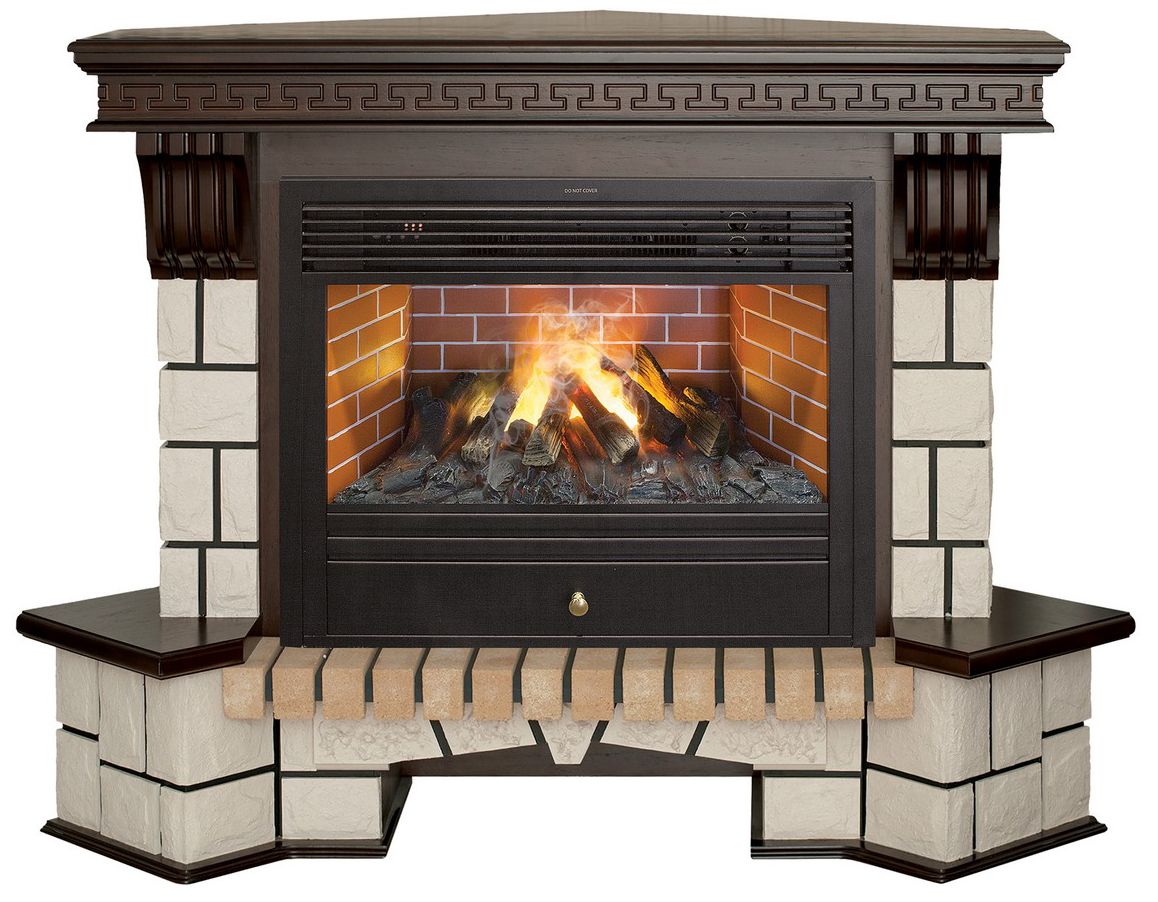 Угловой электрокамин Stone AO с очагом 3D Novara 26