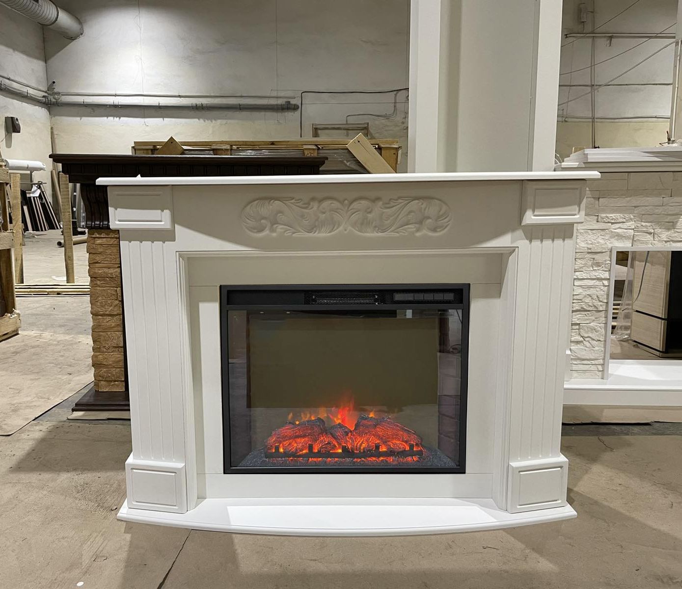 Портал укомплектован широким электроочагом Sparta 25.5 LED с великолепным разноцветным пламенем (3 цвета пламени), пламя в очаге смотрится выразительно и эффектно, а муляж дров и кирпичная кладка создают полное сходство с натуральным очагом. Эффект пламени притягивает к себе внимание с первых секунд. В очаге реализован один из самых совершенных способов визуализации пламени 2D на сегодняшний день. Визуальный эффект горящего огня создается с помощью проекционной LED-технологии.