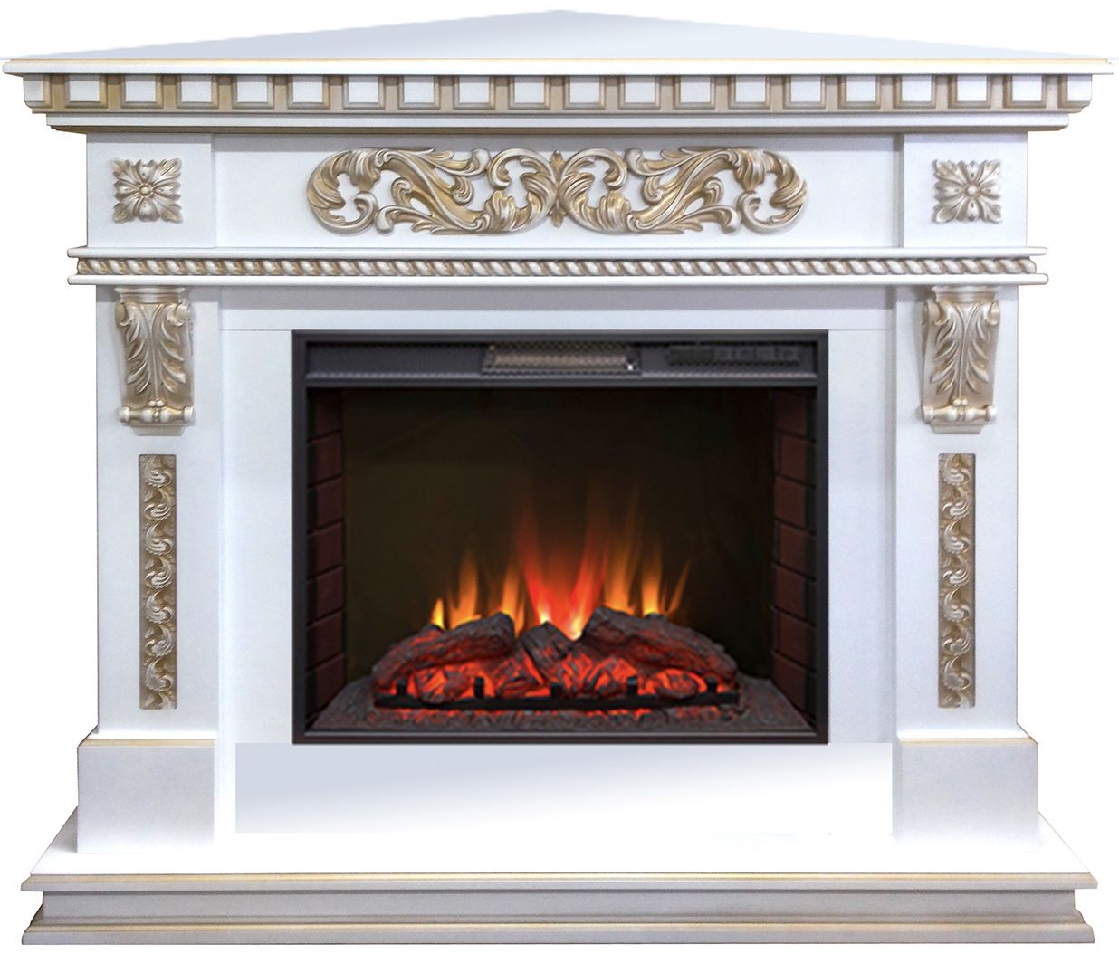 Портал укомплектован широким электроочагом Sparta 25.5 LED с великолепным разноцветным пламенем (3 цвета пламени), пламя в очаге смотрится выразительно и эффектно, а муляж дров и кирпичная кладка создают полное сходство с натуральным очагом. Эффект пламени притягивает к себе внимание с первых секунд. В очаге реализован один из самых совершенных способов визуализации пламени 2D на сегодняшний день. Визуальный эффект горящего огня создается с помощью проекционной LED-технологии.