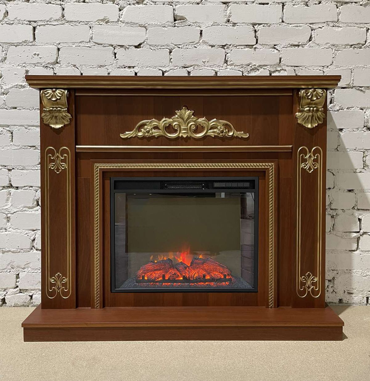Портал укомплектован широким электроочагом Sparta 25.5 LED с великолепным разноцветным пламенем (3 цвета пламени), пламя в очаге смотрится выразительно и эффектно, а муляж дров и кирпичная кладка создают полное сходство с натуральным очагом. Эффект пламени притягивает к себе внимание с первых секунд. В очаге реализован один из самых совершенных способов визуализации пламени 2D на сегодняшний день. Визуальный эффект горящего огня создается с помощью проекционной LED-технологии.
