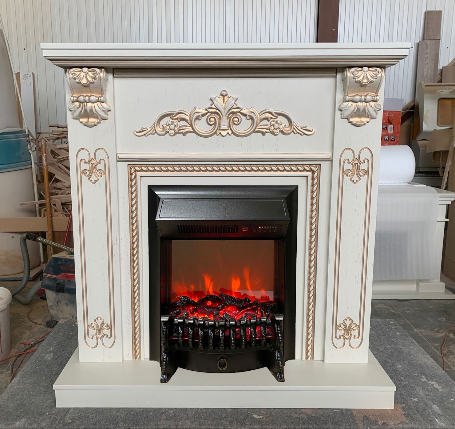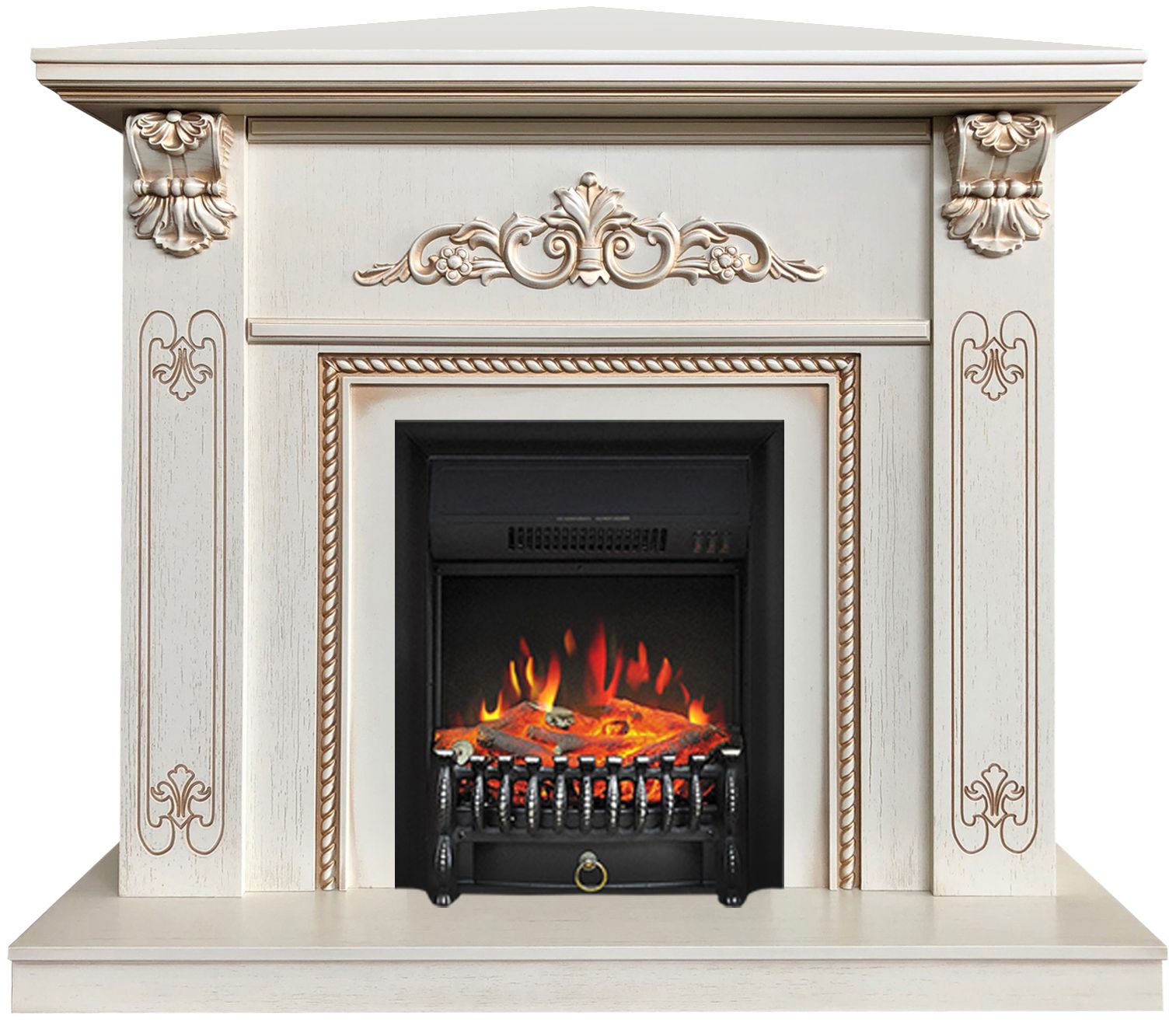Портал укомплектован классическим электроочагом Fobos. В очаге визуальный эффект горящего огня создается с помощью проекционной LED-технологии. Присутствует звуковой эффект горения пламени и потрескивания дров. Очаг может работать как в режиме обогрева, так и в декоративном режиме без обогрева. В режиме обогрева в очаге предусмотрено 2 уровня регулировки обогрева, возможно переключение мощности обогрева 750-1500 Вт, поэтому в холодные дни данный электрокамин можно использовать как дополнительный источник тепла. Предусмотрена функция защиты от перегрева.